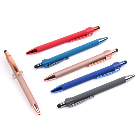 ปากกาลูกลื่นพลาสติกสีโรสโกลด์พร้อมจอสัมผัสหรูหราโลโก้ตามสั่ง